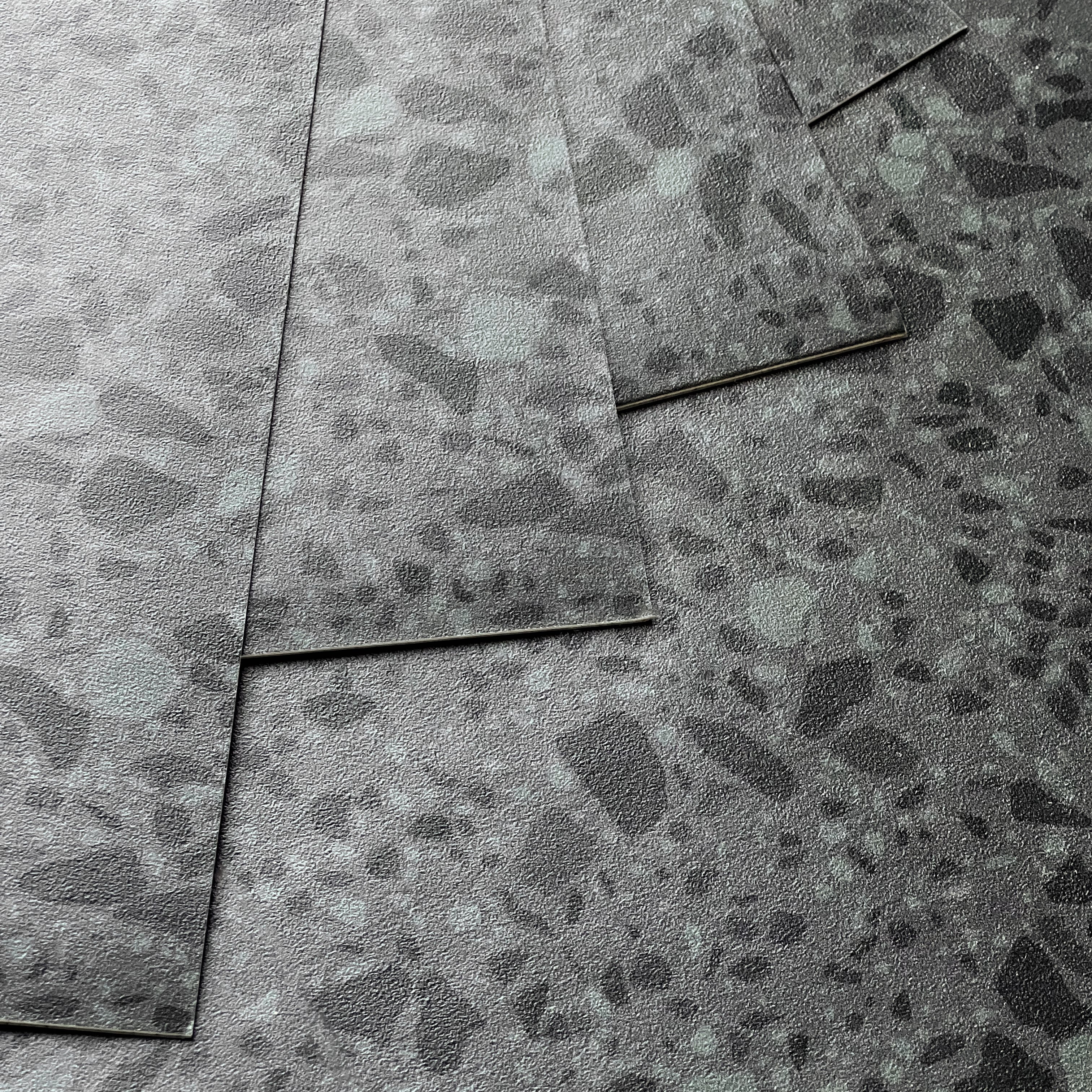 Venezia terrazzo selvklebende fliser er rett og slett rålekre. Flisene etterligner sort og grå terrazzo og har et moderne og stilrent design. Disse flotte flisene med eksklusiv look kan fornye gulvet eller veggen din - raskt og enkelt.