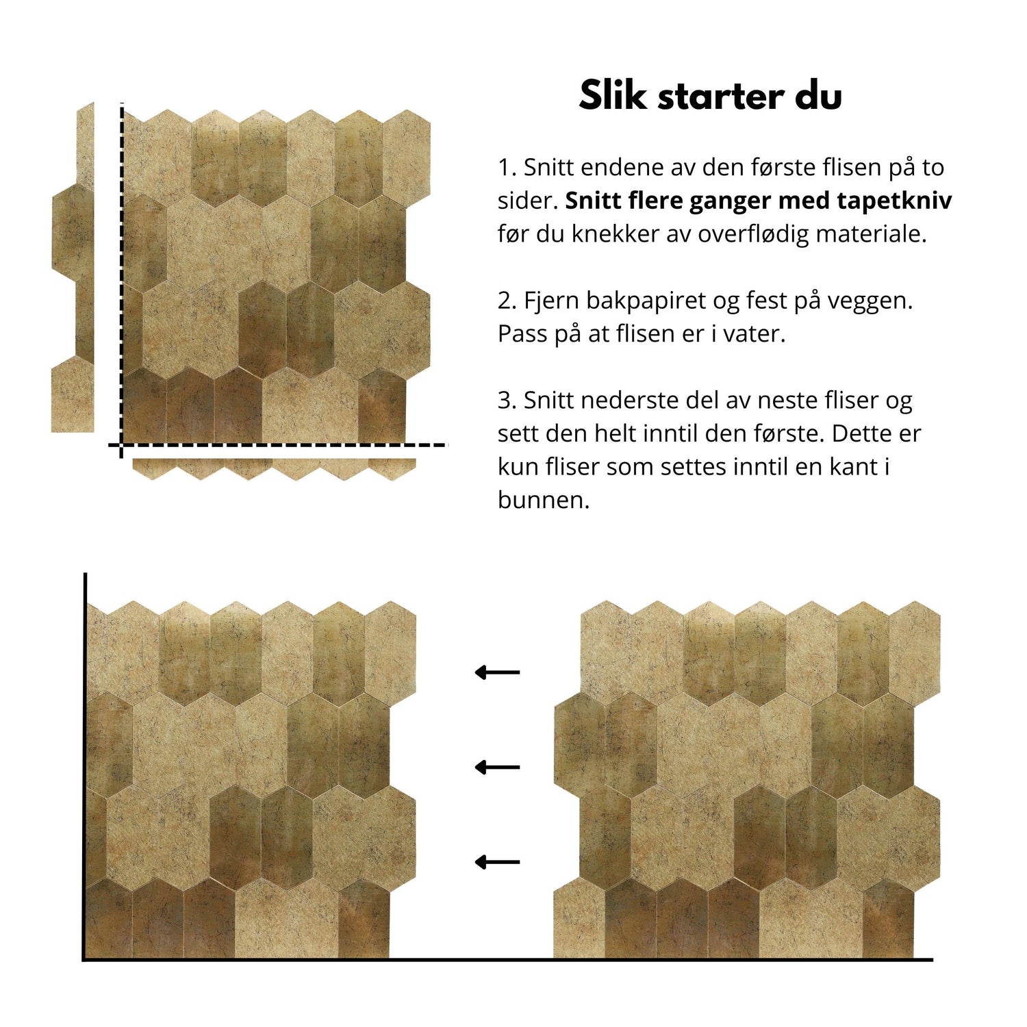 - OBS: Dette er en vareprøve av Aria selvklebende veggfliser