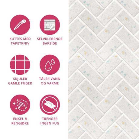 Vareprøve: Terrazzo fiskebein selvklebende veggfliser