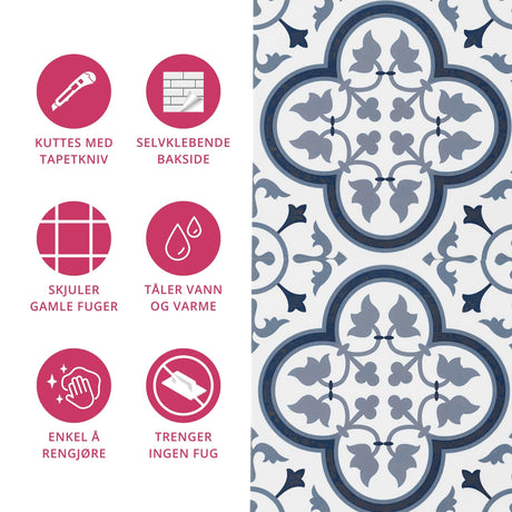 Vareprøve: Mathilde blå selvklebende fliser