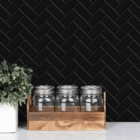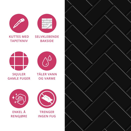 Vareprøve: Sort fiskebein selvklebende veggfliser