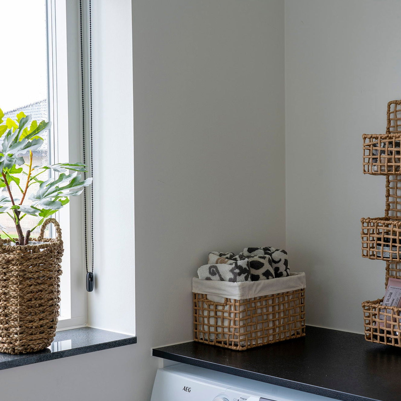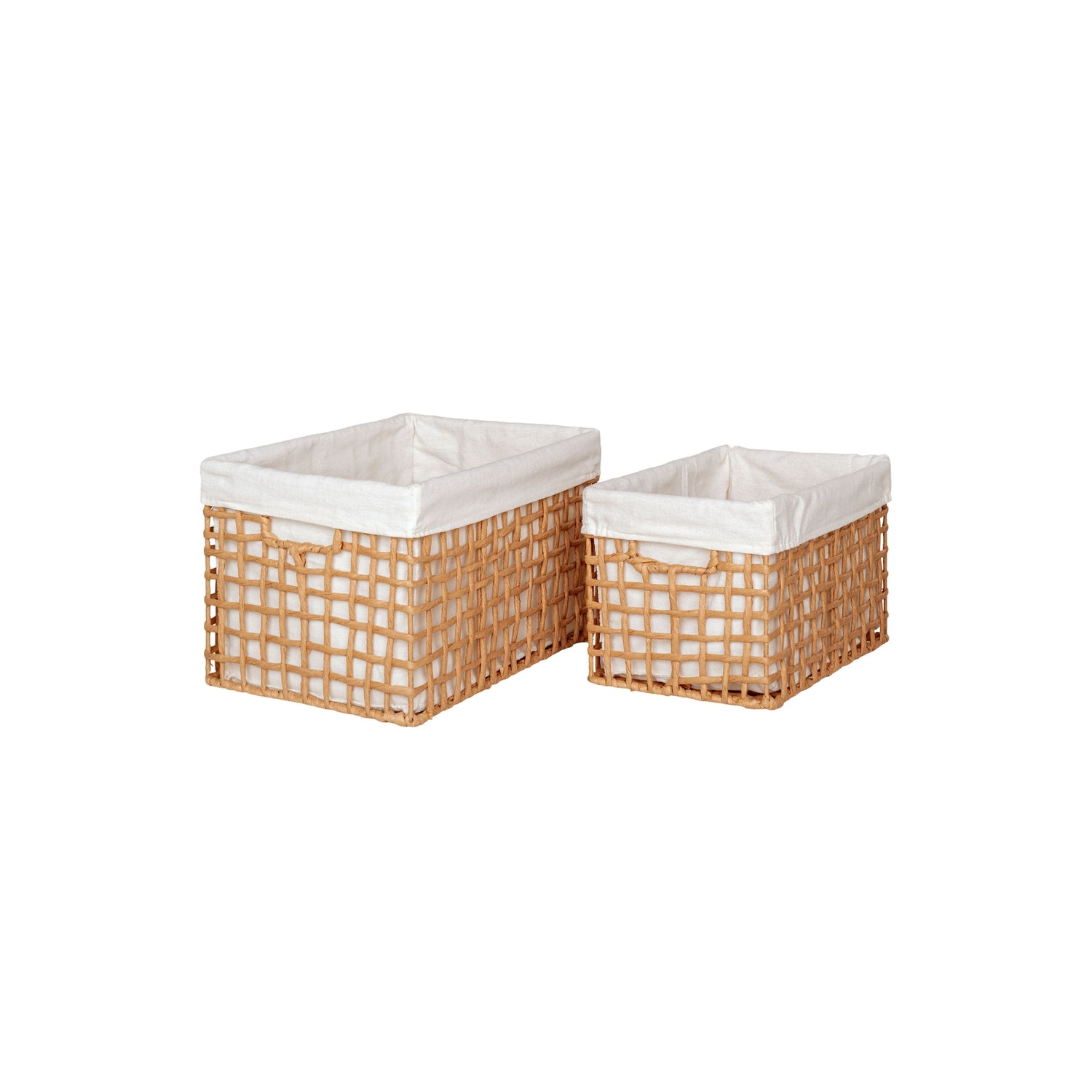 Bruk dem til småting i stuen, tekstiler på badet eller organisering i garderoben. De to størrelsene gjør det enkelt å tilpasse etter behov, og når de ikke er i bruk kan de stables i hverandre. En praktisk løsning som tilfører varme materialer i rommet.