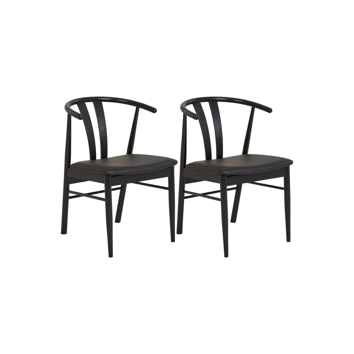 Stolen er laget i solid bøk med et komfortabelt sete i svart PU-skinn og polstring av polyuretanskum. De rene linjene og helsvarte designet gjør den til et tidløst valg til spisestuen.