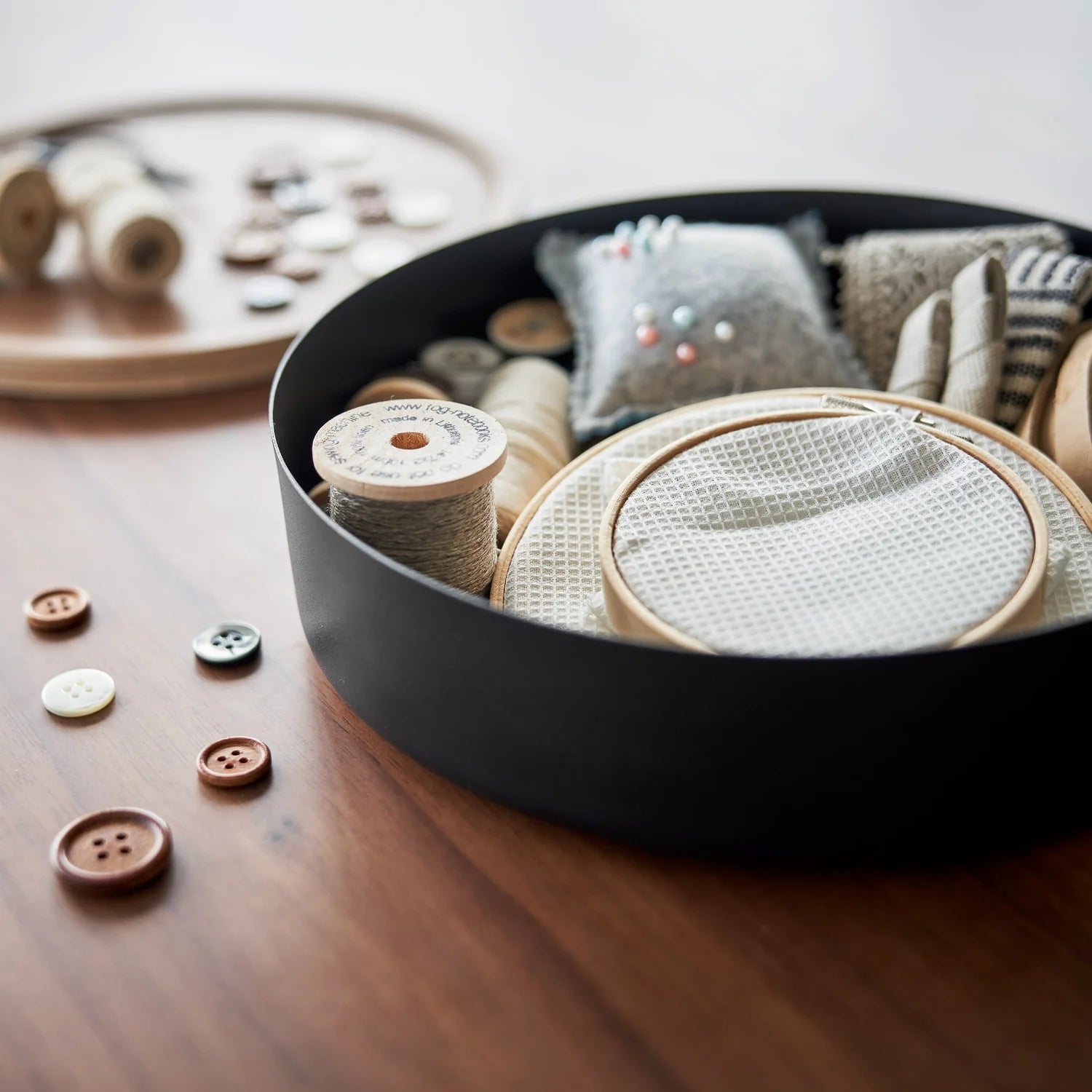 De runde boksene er perfekte til oppbevaring av småting som smykker, sysaker, kontorrekvisita eller andre små gjenstander du ønsker å holde samlet. Lokkene gjør at innholdet skjules samtidig som boksene fungerer fint som en dekorativ detalj på hylle, bord eller kommode.