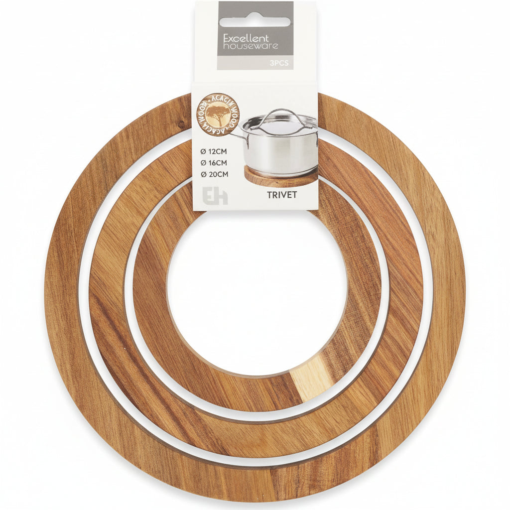 3-pk Gryteunderlag akasietre dia: 12-20 cm
