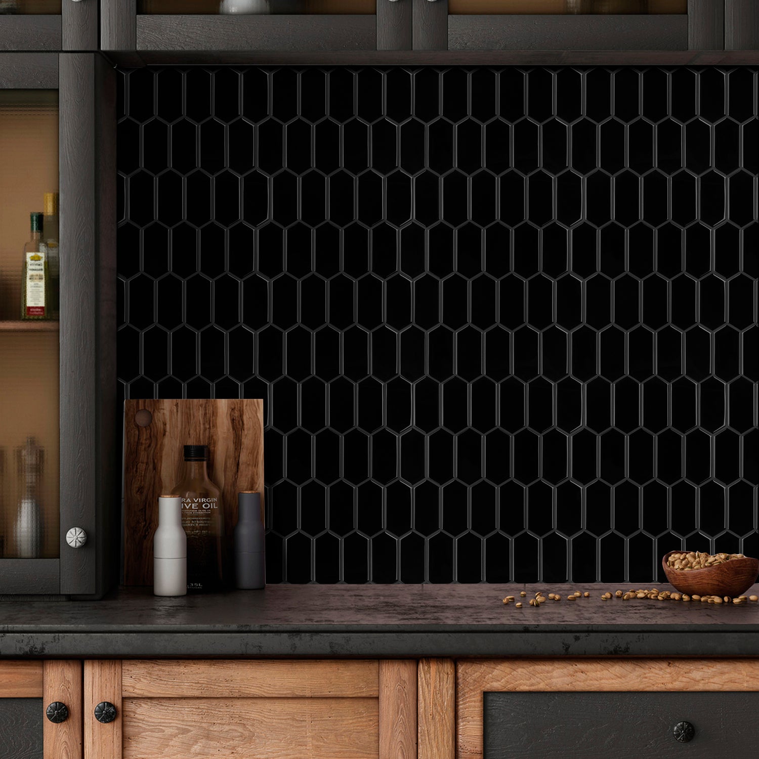 Vareprøve: Alexandra sort selvklebende veggfliser