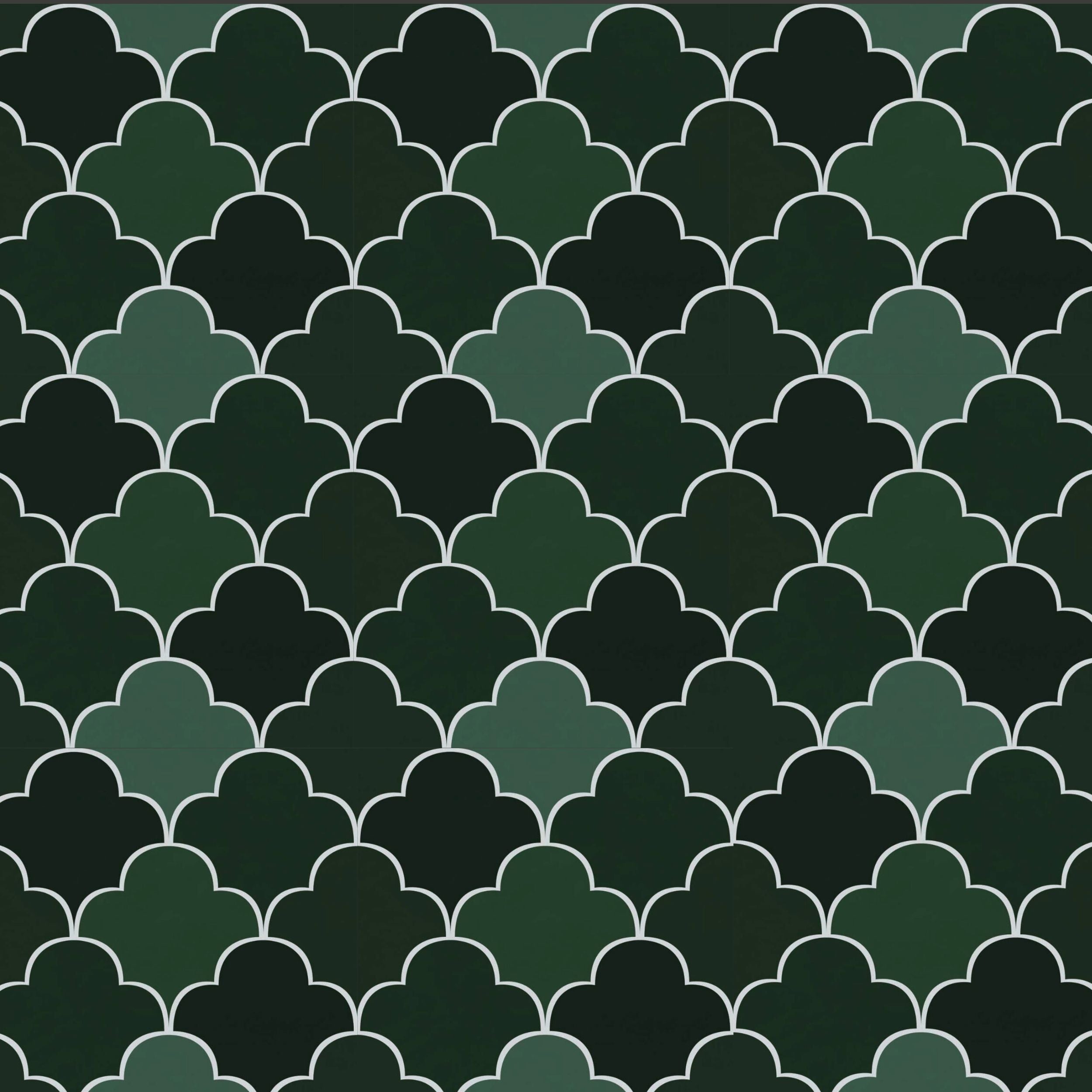Emerald selvklebende fliser har et marokkansk-inspirert design i dype grønnfarger. Tøff på både vegg og på gulvet sammen med andre mørke farger.