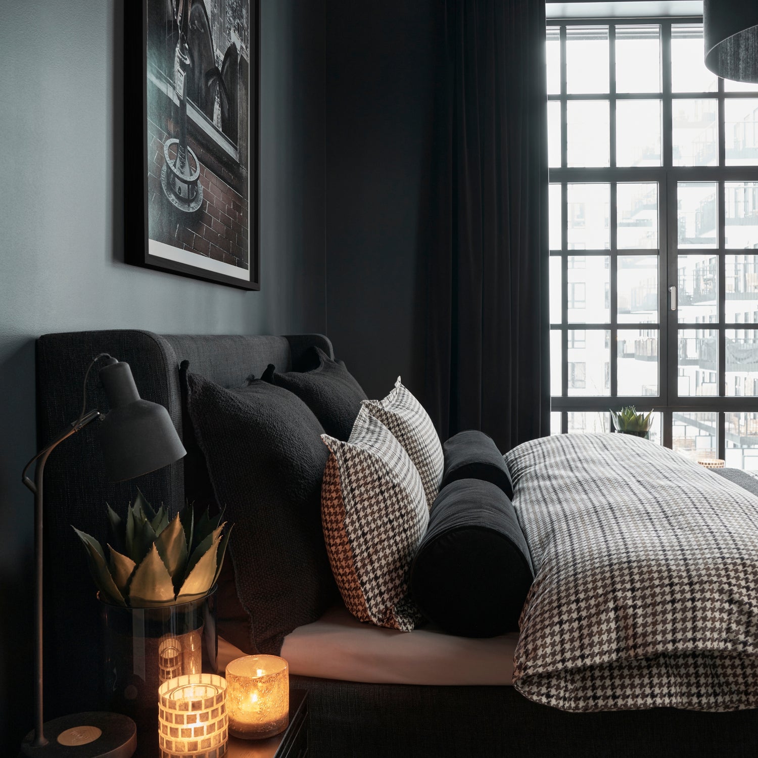Sengesettet er vevd av bomull i høy kvalitet. Den nøye utformede oxfordrammen og den diskrete glidelåsen i bunn gir et raffinert uttrykk som passer like godt på moderne som tradisjonelle soverom.