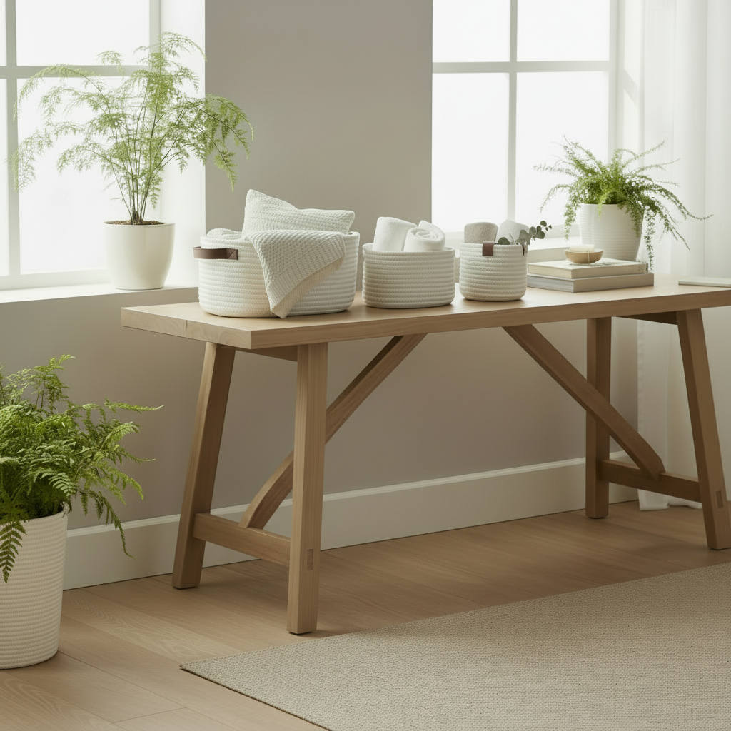 Kurvene kommer i tre ulike størrelser, noe som gjør dem ideelle til oppbevaring av alt fra småting på badet eller garderoben eller vaskerommet. Den nøytrale hvite fargen passer sømløst inn i ulike interiørstiler, enten du liker det minimalistiske, skandinaviske eller mer klassiske uttrykket.