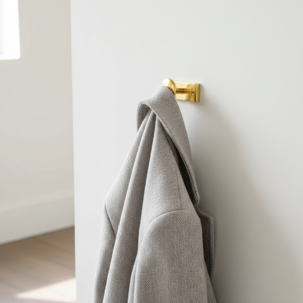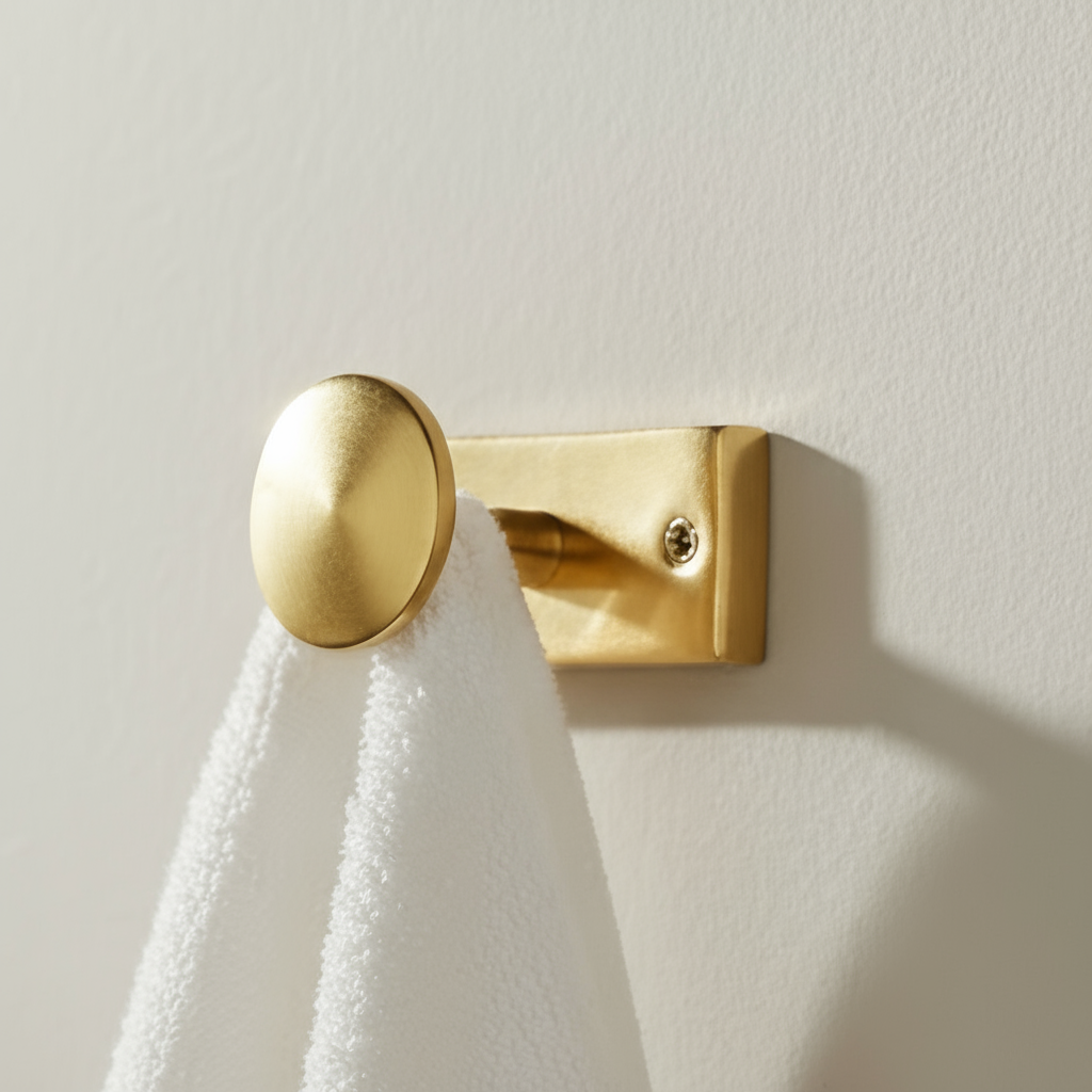 Gi rommet et løft med denne enkle knaggen i gullfarget metall. En praktisk og dekorativ løsning for å henge opp håndklær, vesker, klær eller smykker.