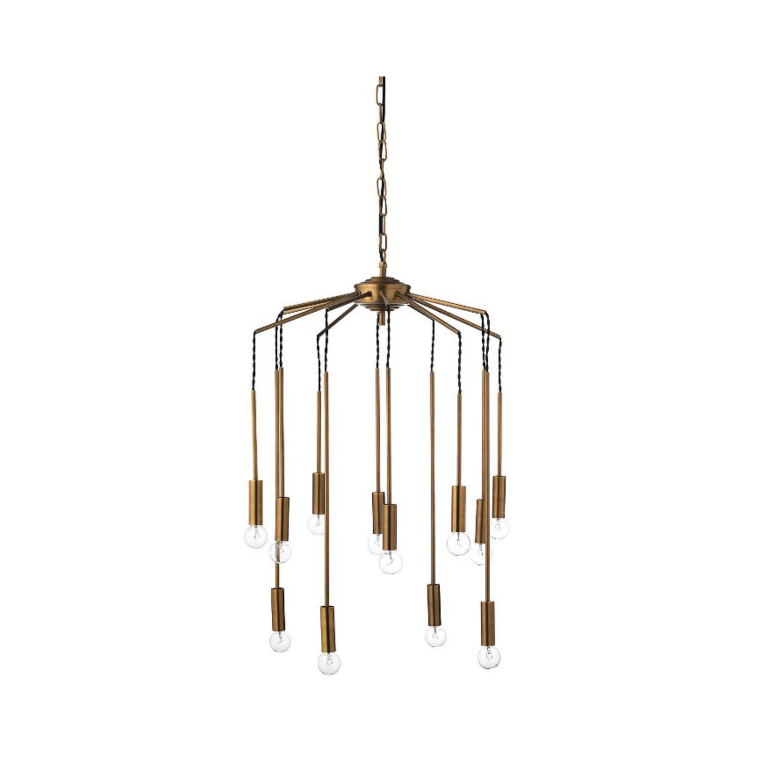 Eksklusiv taklampe i gullfarget metall med 12 armer som danner en elegant klaseform. Lampen har et moderne uttrykk med klare linjer og gir et vakkert lysspill i rommet.