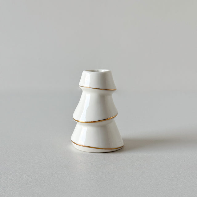 Skap stemning med en elegant lysestake formet som et juletre i hvitt med delikat gullkant. Denne dekorative lysestaken kombinerer enkel, moderne design med klassisk julepreg og passer perfekt som pynt i vinduskarmen, på spisebordet eller på en hylle.