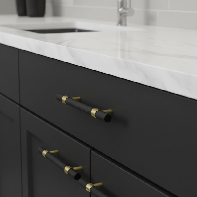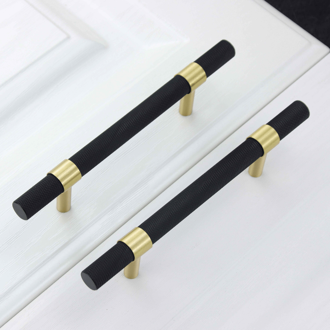 New York håndtak i sort og gull messing. Håndtaket har et moderne og tidløst design som passer perfekt i nordiske hjem. Perfekt til både kommoden, kjøkkeninnredning, nattbord - gjør møblene dine unike med dette nydelige håndtaket.