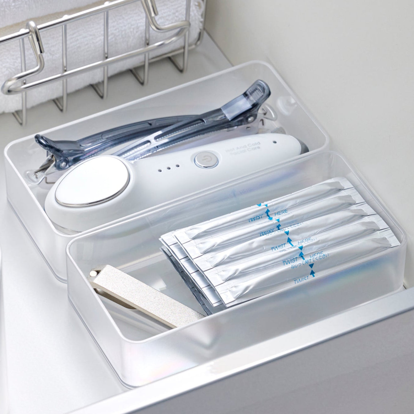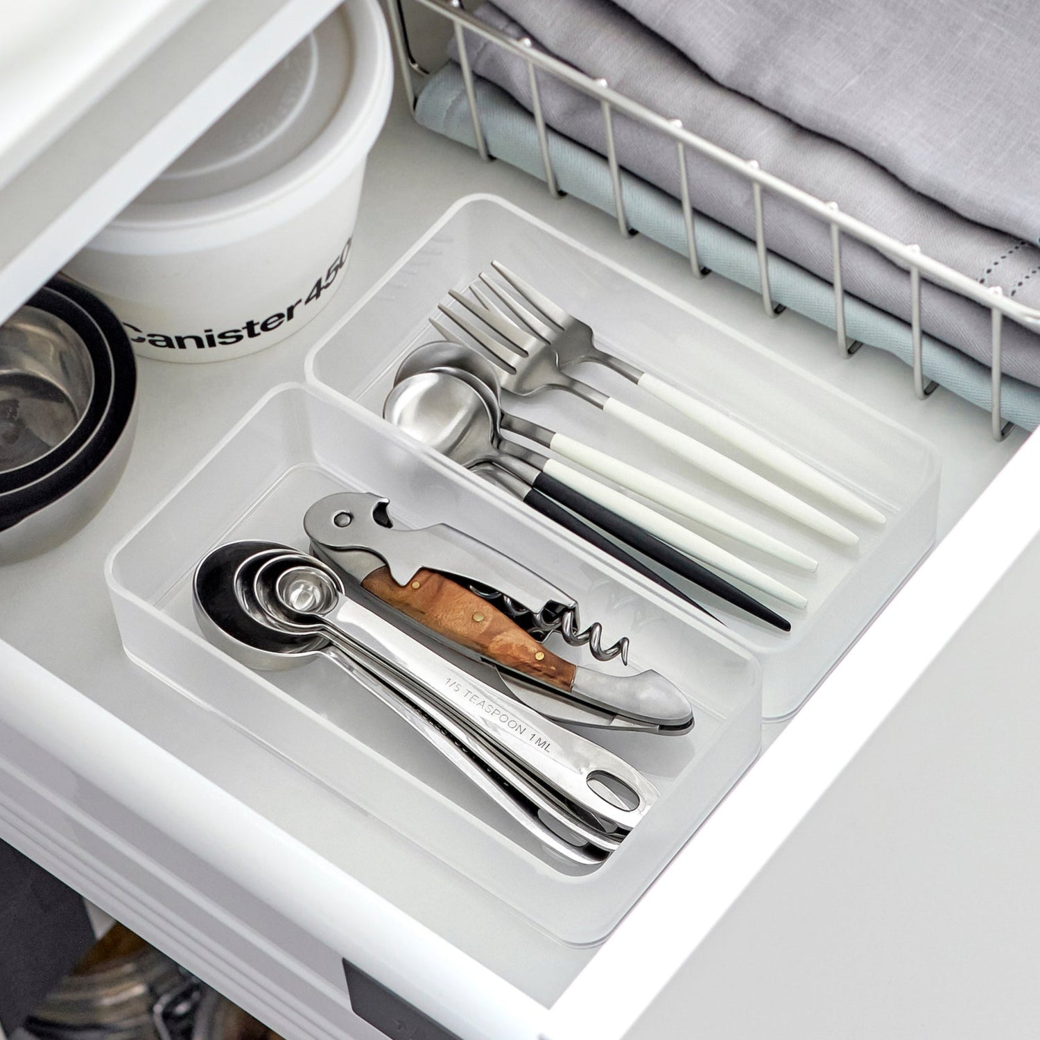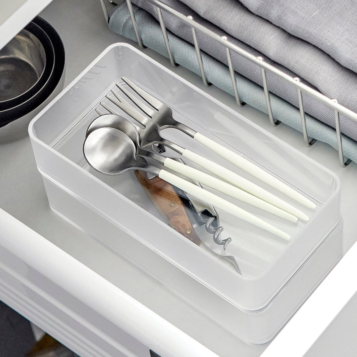 De gjennomsiktige boksene gir enkel oversikt over innholdet og sørger for en ryddig skuff eller hylle. Designet i solid og slitesterk plast, er de ideelle for oppbevaring av bestikk, småredskaper eller kosmetikk.