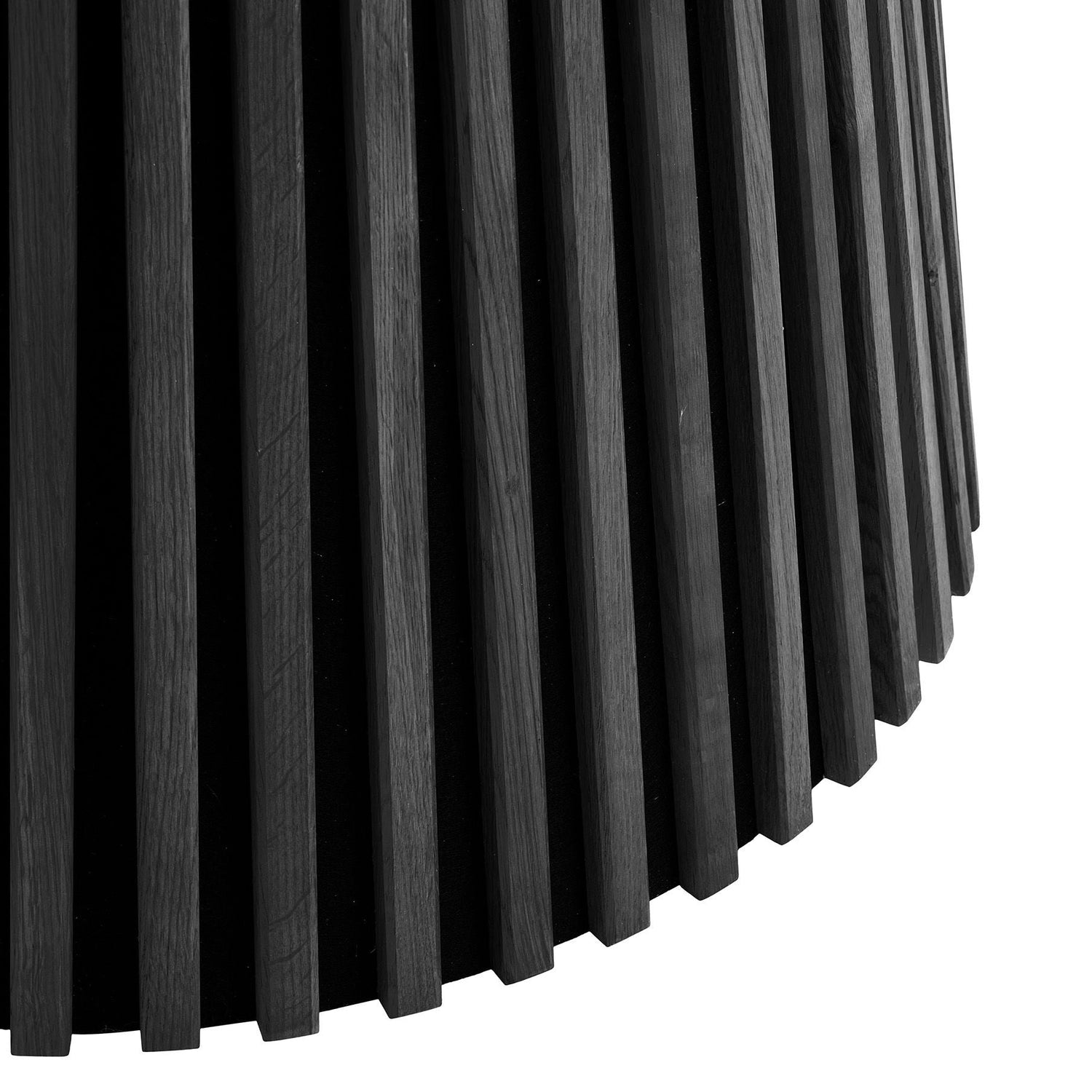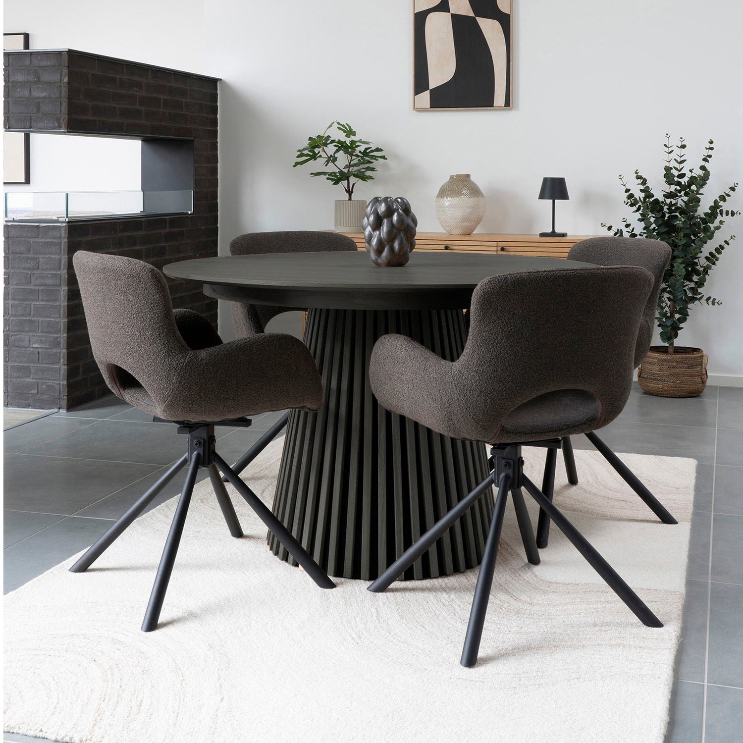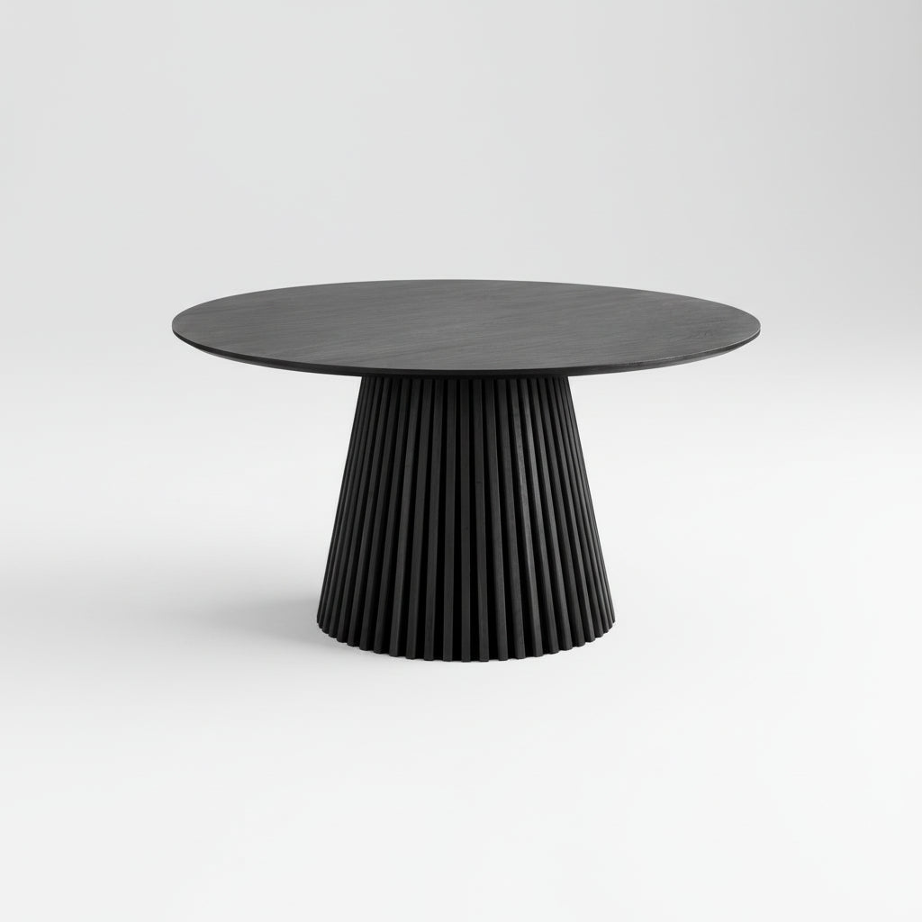 "Rundt spisebord i svart eikefinish med dekorativ lamellfot kvadratisk format"