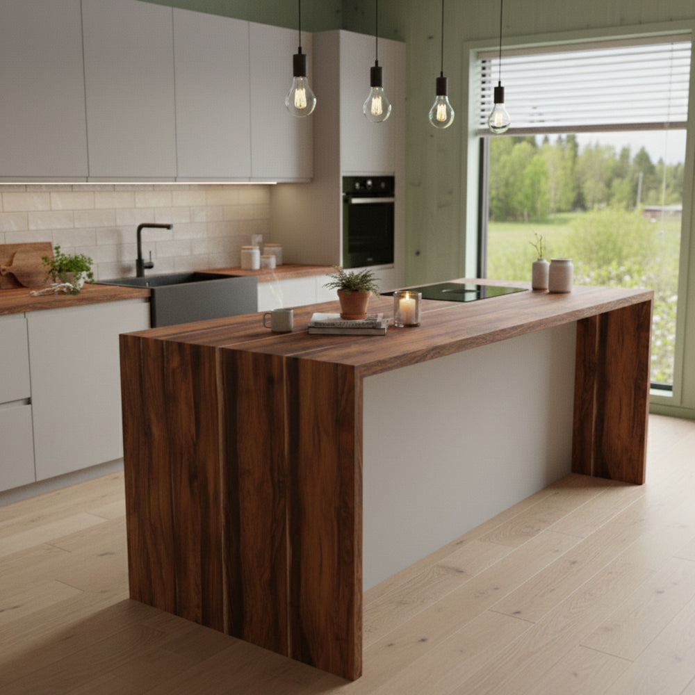 Premium Aspen eik brukes ofte på veggflater for å skape panelpreg, men passer også godt til bordplater, skapfronter og kommoder når man ønsker et varmere uttrykk.