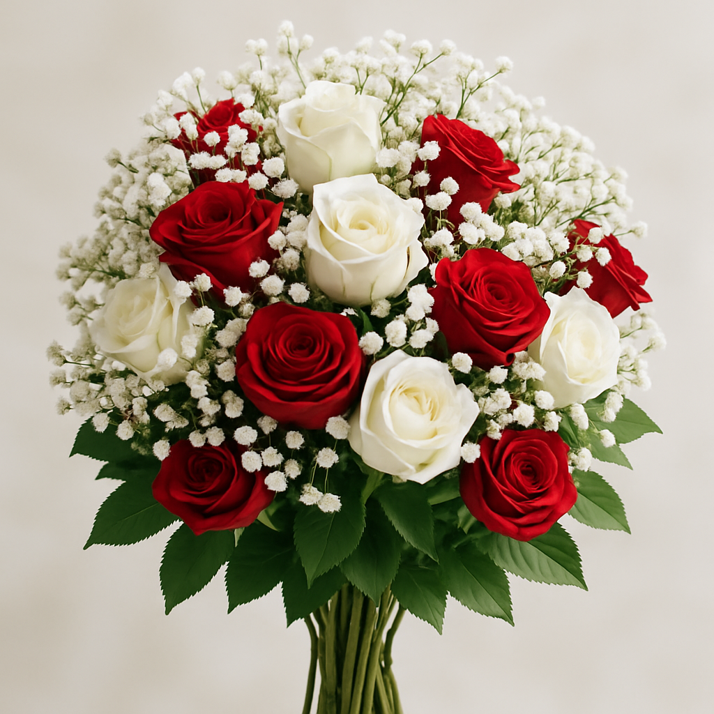 Miks sammen med endre roser og brudeslør så får du en nydelig bukett!
