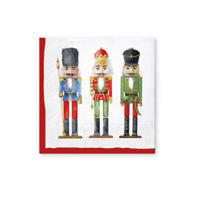 Søte servietter med nøtteknekkere. Pynt opp middagsbordet i julen med disse råkule serviettene. Serviettene er 3-lagspapirservietter og kommer med 20 stk i pakken.