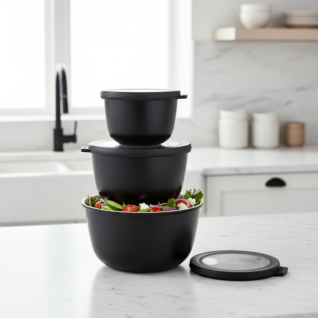 Settet inneholder tre størrelser på 500 ml, 1000 ml og 2000 ml, noe som gjør det lett å tilpasse etter både små rester, lunsj, salater og større matvarer. De tette lokkene gjør at innholdet oppbevares trygt, og bollene kan brukes i både kjøleskap, fryser, mikrobølgeovn og oppvaskmaskin, noe som gjør dem svært anvendelige i en travel hverdag.