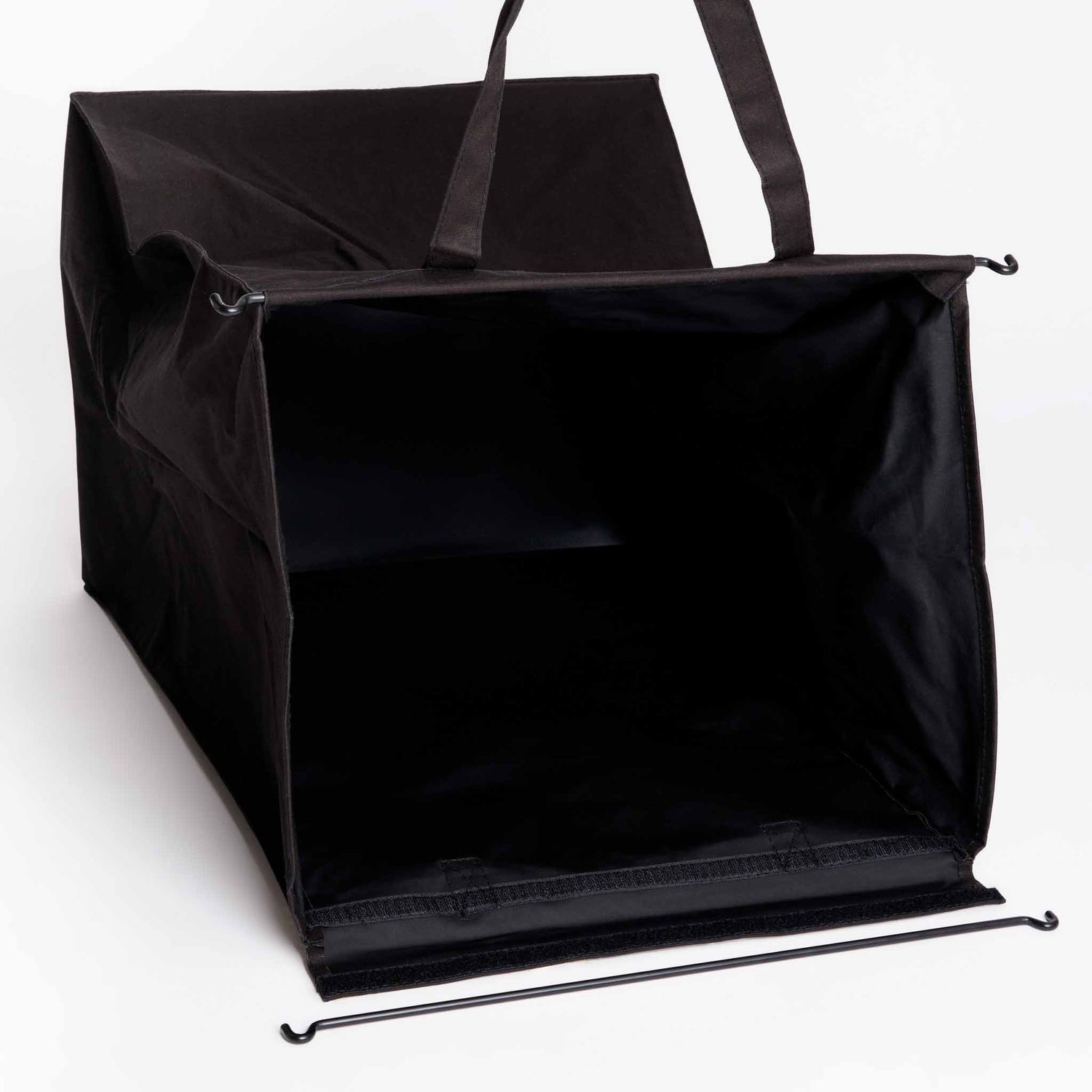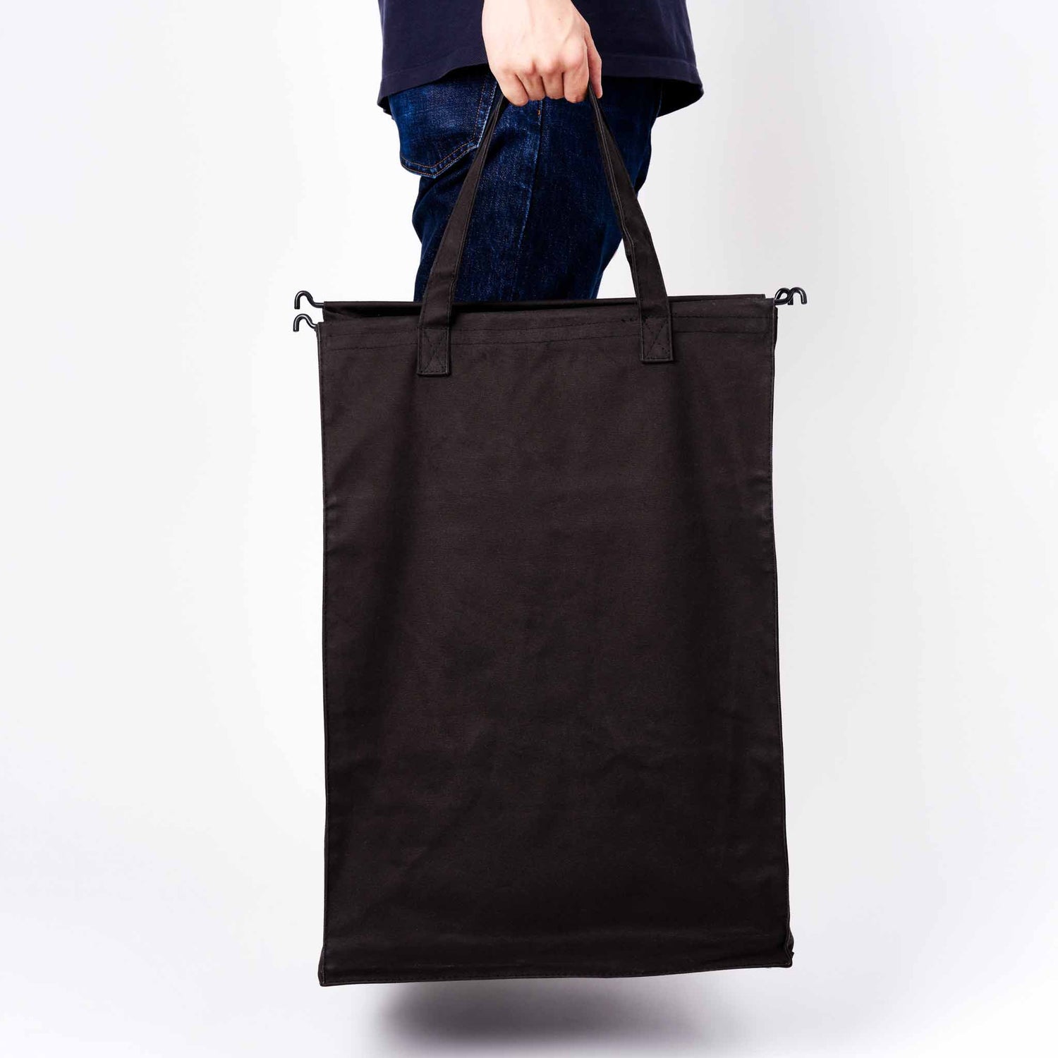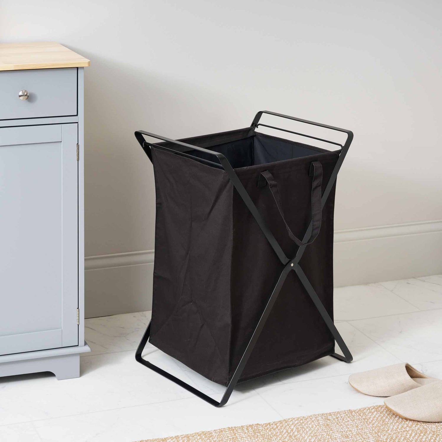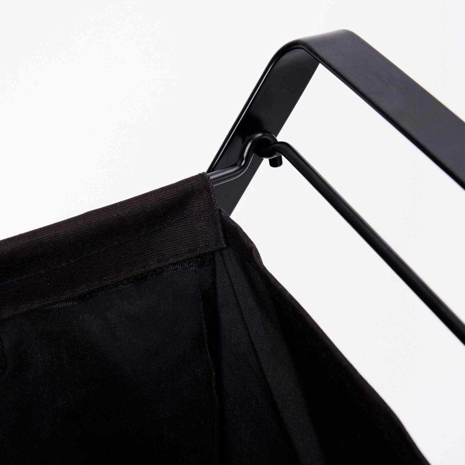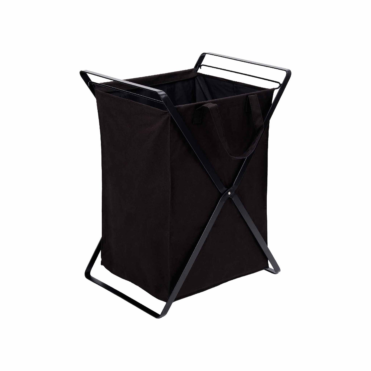 Sammenleggbar skittentøyskurv med sort bomullspose og stålramme