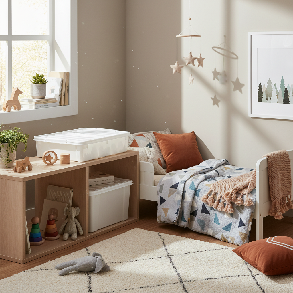 Transparent plastboks med hjul for oppbevaring i soverom