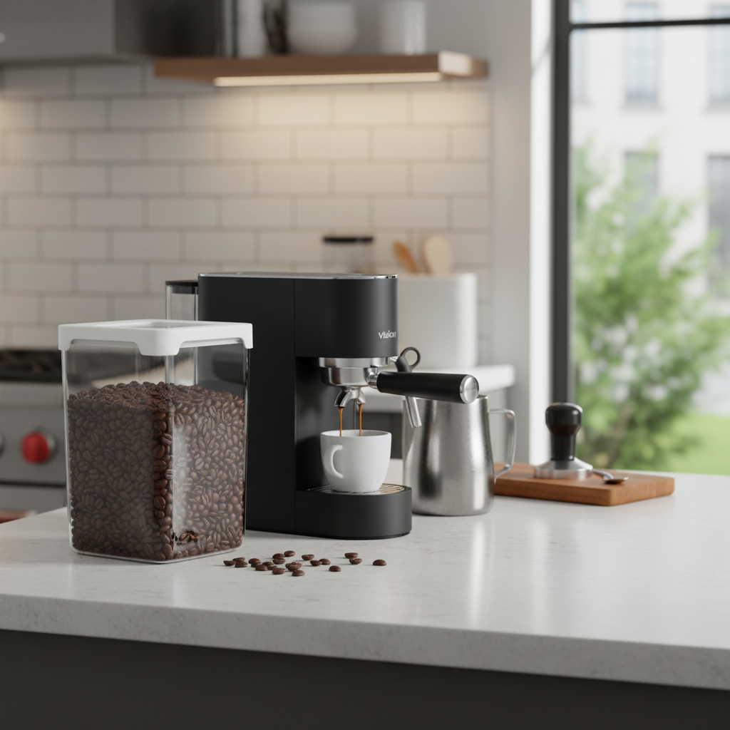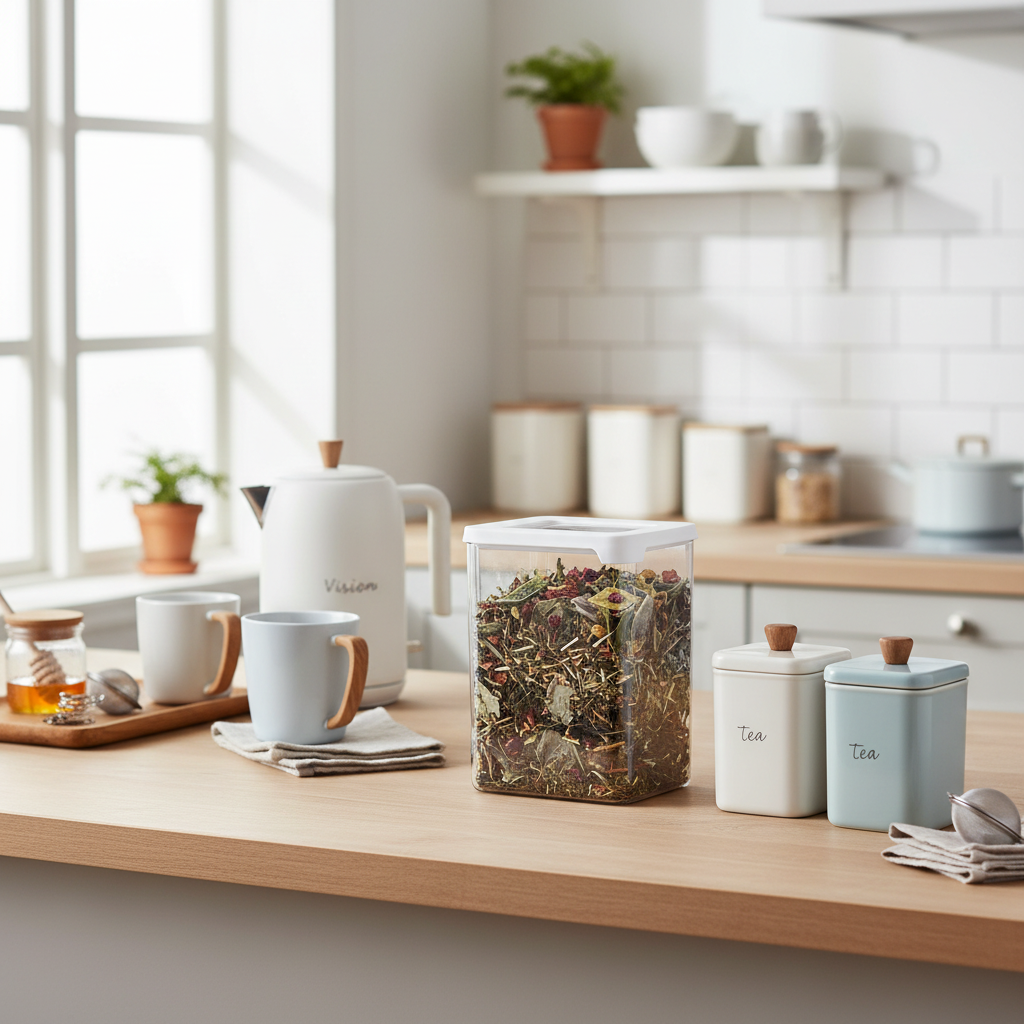 Den smarte, modulære formen gjør at beholderen kan stables sammen med andre bokser i Vision-serien. Dette gir et ryddig og plassbesparende oppbevaringssystem i både kjøkkenskap og skuffer.