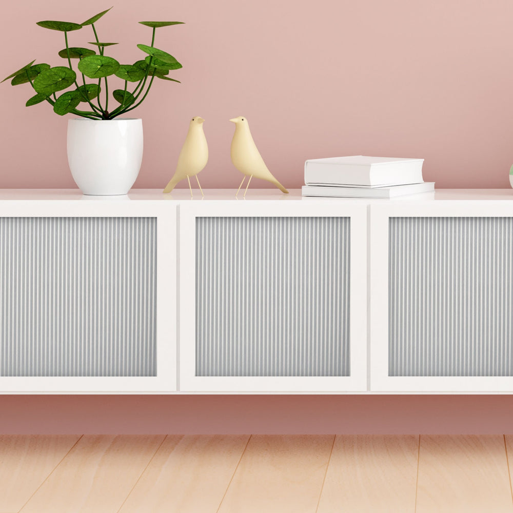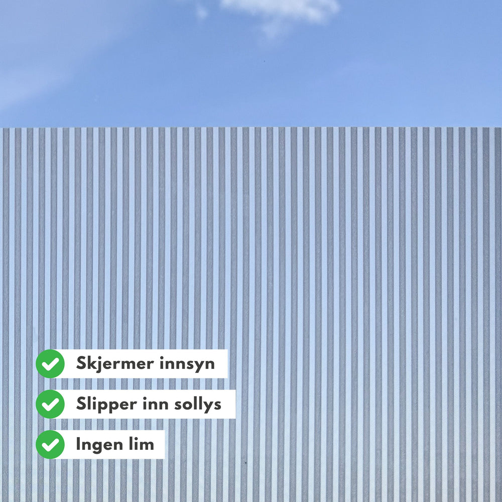 Static Fluted vindusfolie er en etterlengtet nyhet som imiterer "fluted glass" også kalt "ribbed glass" eller rillet glass på norsk. Denne kan festes på vindu for å skjerme innsyn eller på glasset på vitrineskap og kjøkkenskap for å skjule rot eller bare pynte opp glasset.