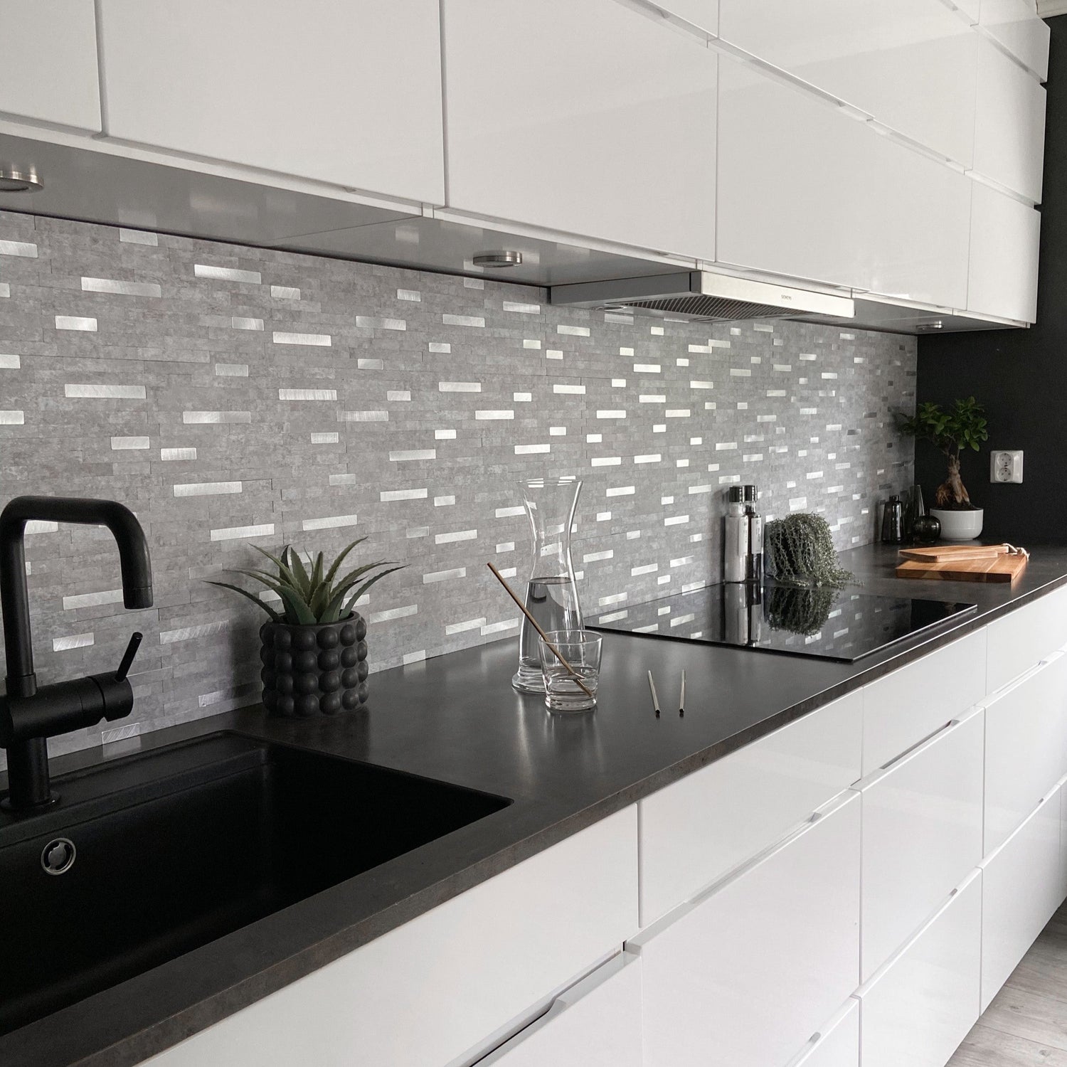 Vareprøve: Stein lys grå selvklebende veggfliser