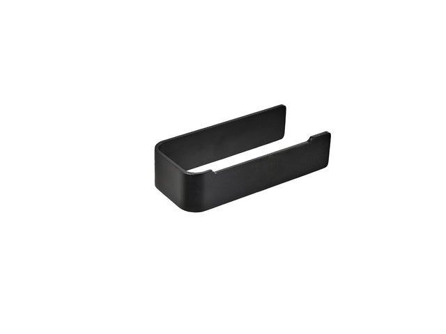 Den karakteristiske U formen gir raskt rulleskift og et minimalistisk uttrykk som passer moderne bad. Holderen er laget i matt sort aluminium og monteres med skjult oppheng slik at den ser ren og integrert ut på veggen.