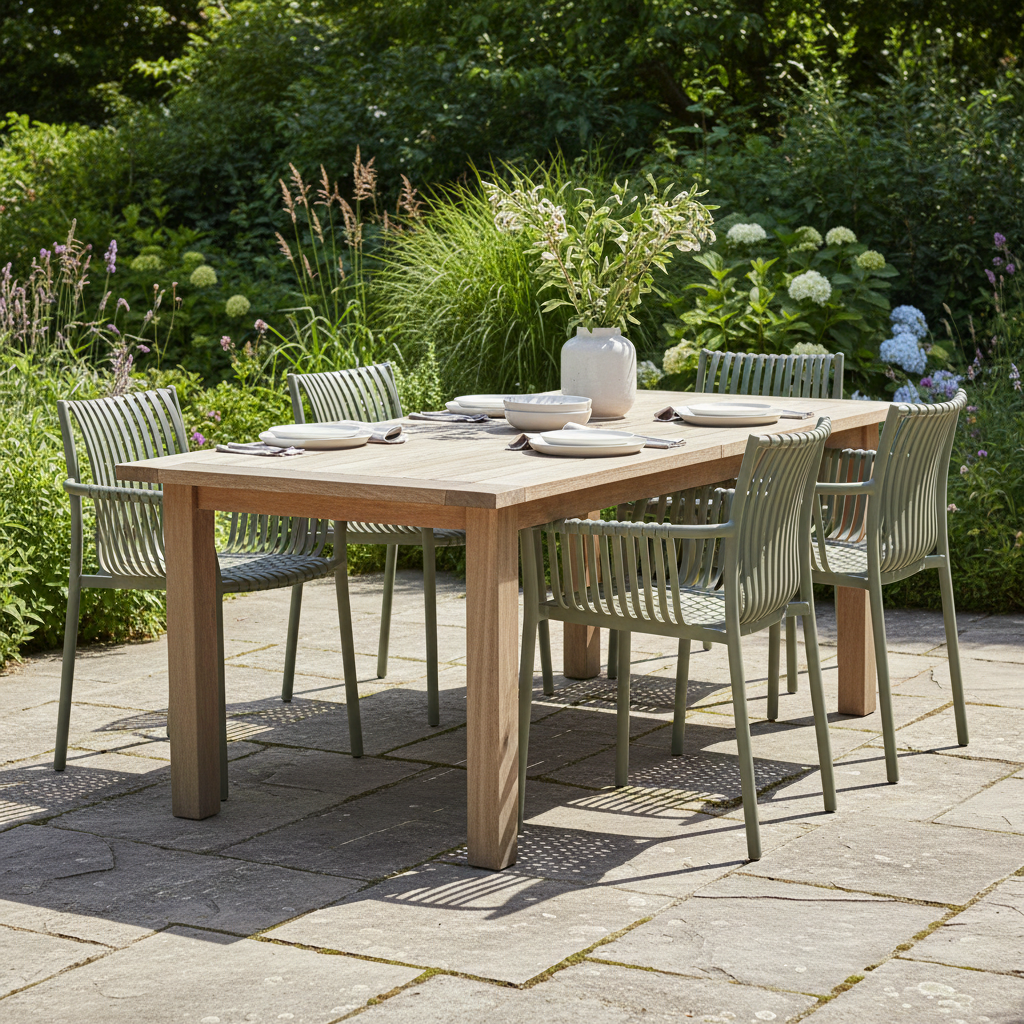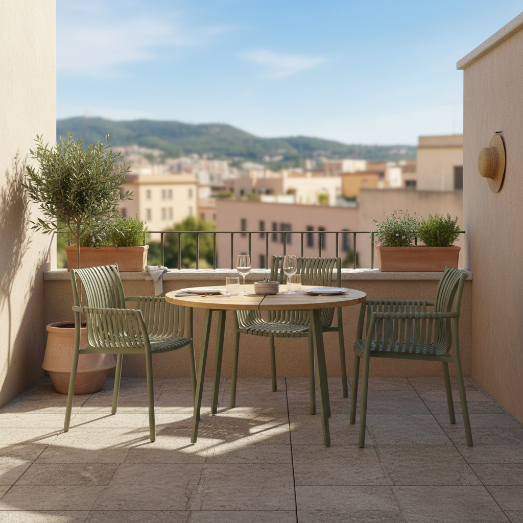 Gi uteplassen et rolig og moderne uttrykk med Tulsa hagestol i grønn. Den dempede grønnfargen gir stolen et mykere preg enn klassisk sort, og gjør den enkel å kombinere med treverk, naturtoner og grønne omgivelser på terrasse, balkong eller i hage.