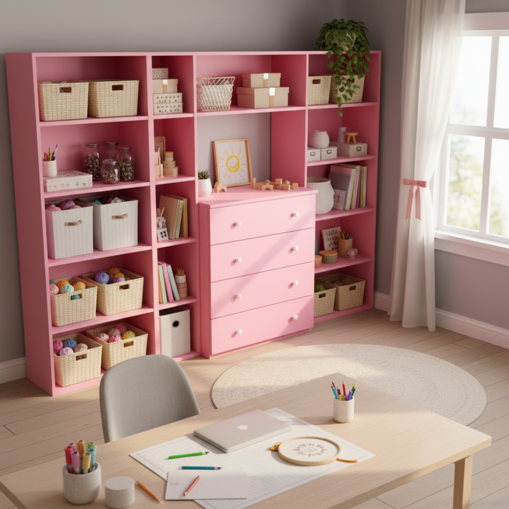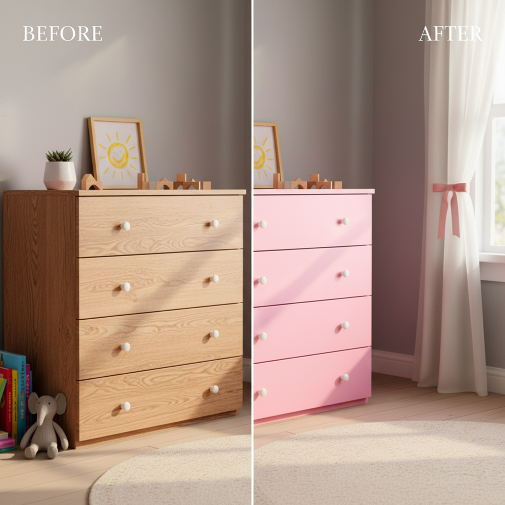 Rosa selvklebende kontaktplast til kommode – matt pastell folie for enkel og rimelig oppussing av barnerom