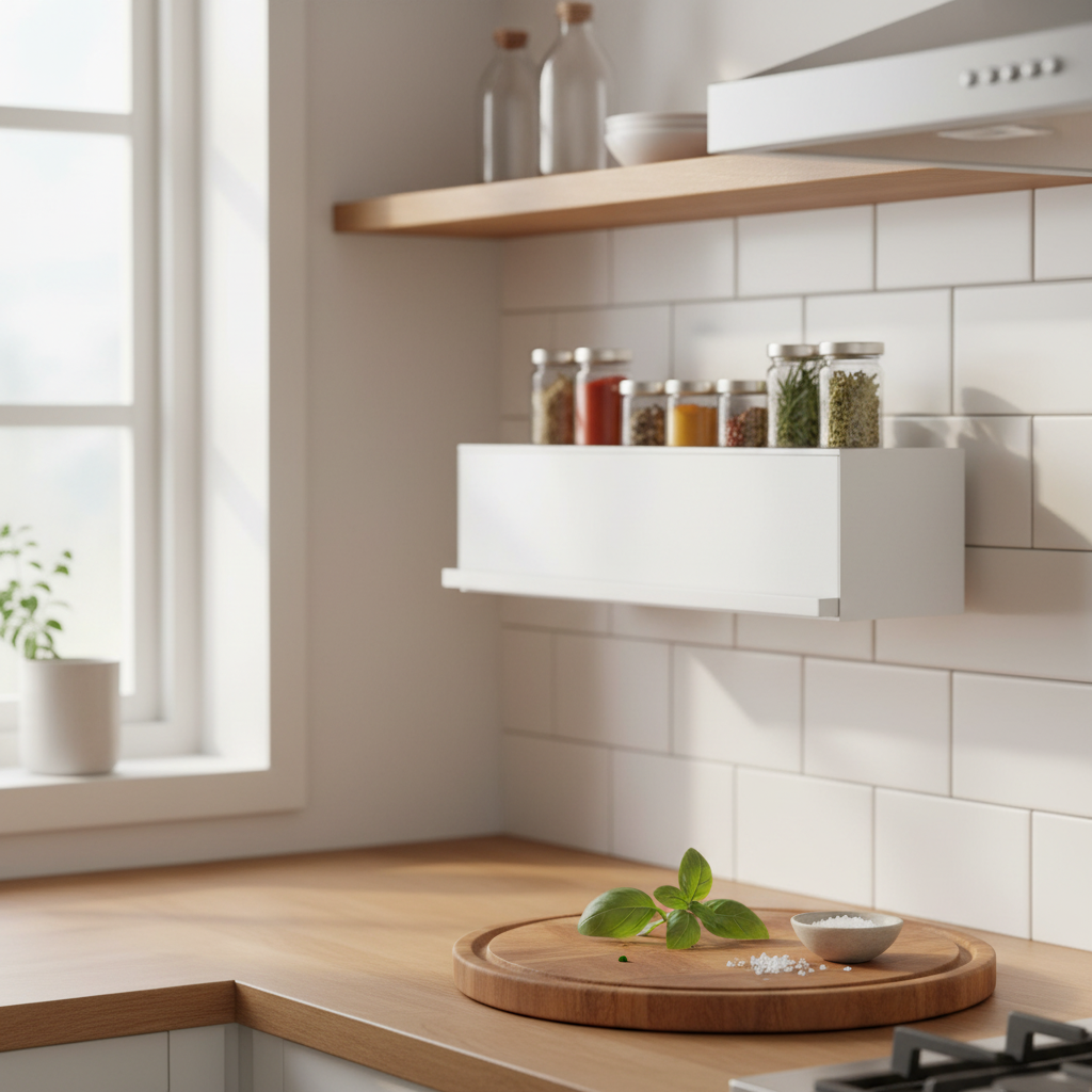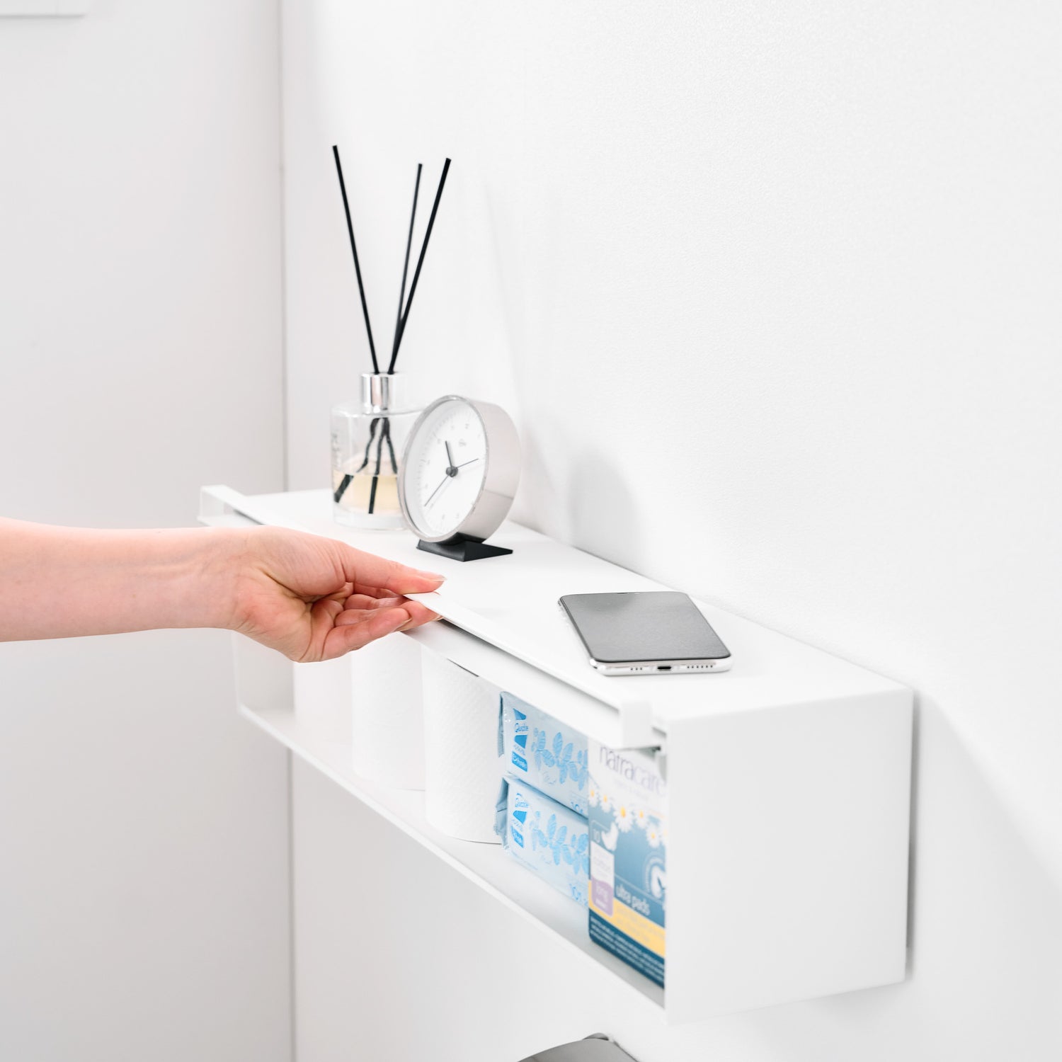 En praktisk klaff som holder innholdet skjult. Perfekt størrelse til å gjemme ekstra doruller eller på kjøkkenet til krydder.